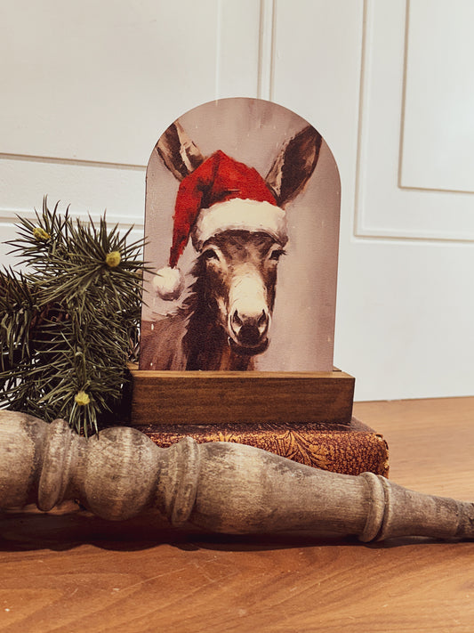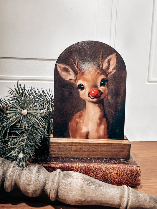 Christmas décor, farmhouse Christmas, reindeer print, Rudolph, vintage holiday art, rustic holiday décor, handmade Christmas sign, Christmas gift idea, winter shelf décor,