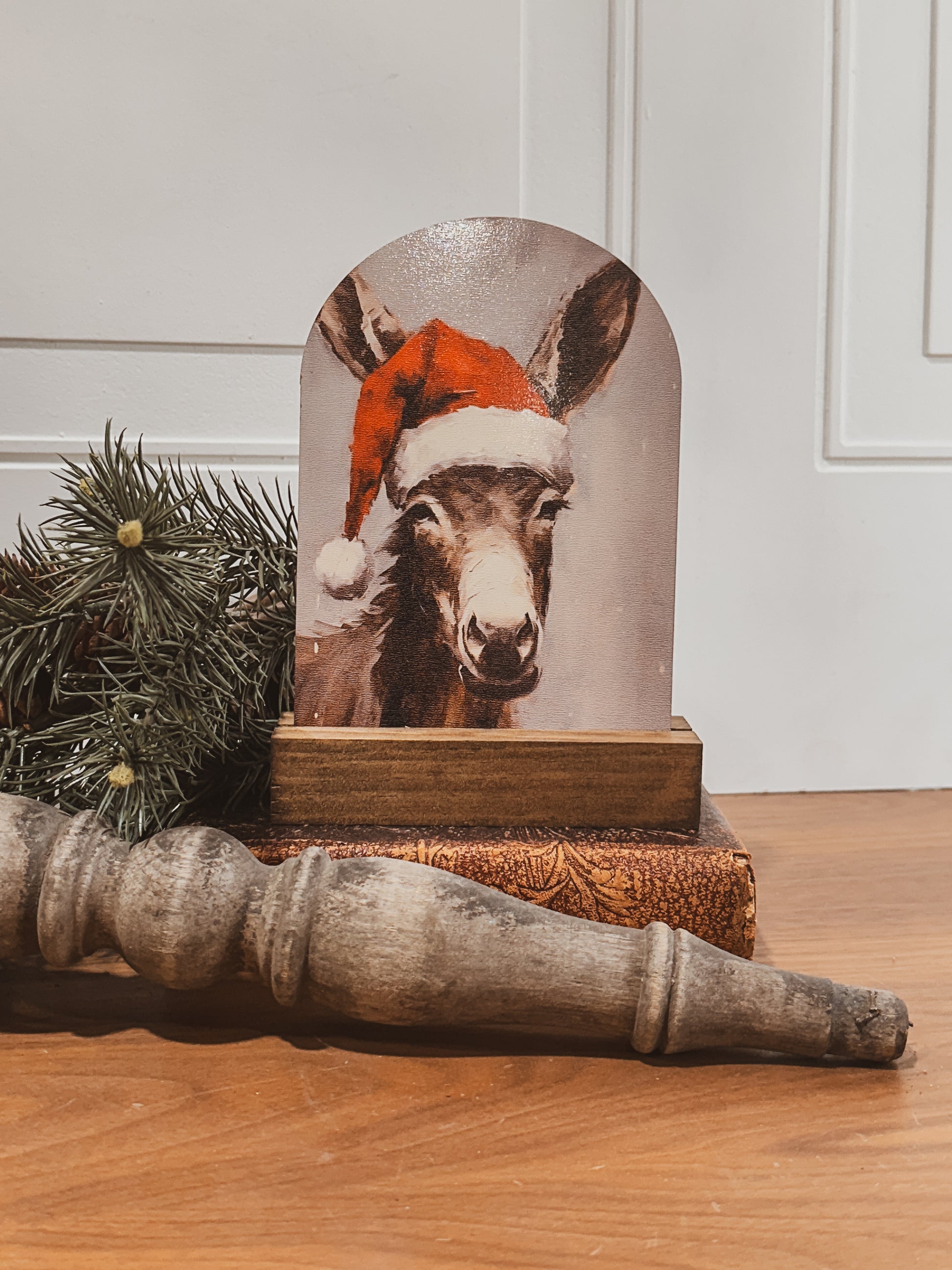 Bring a bit of humor and heart to your holiday décor with this Christmas Donkey Print. Featuring a festive donkey wearing a Santa hat, this piece adds the perfect touch of rustic charm and country Christmas cheer to any space.