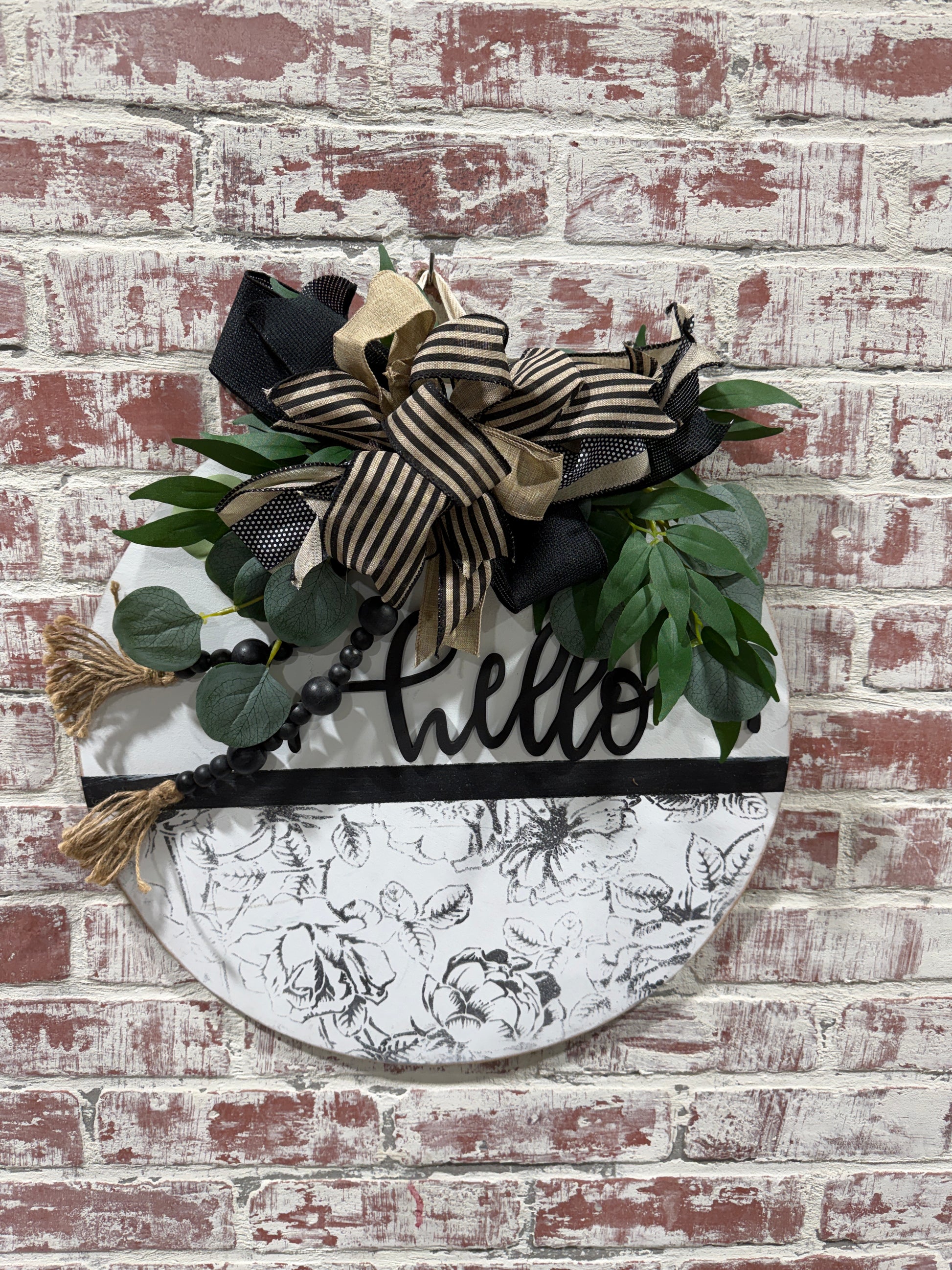 Front door decor, Hello door hanger, Neutral door hanger