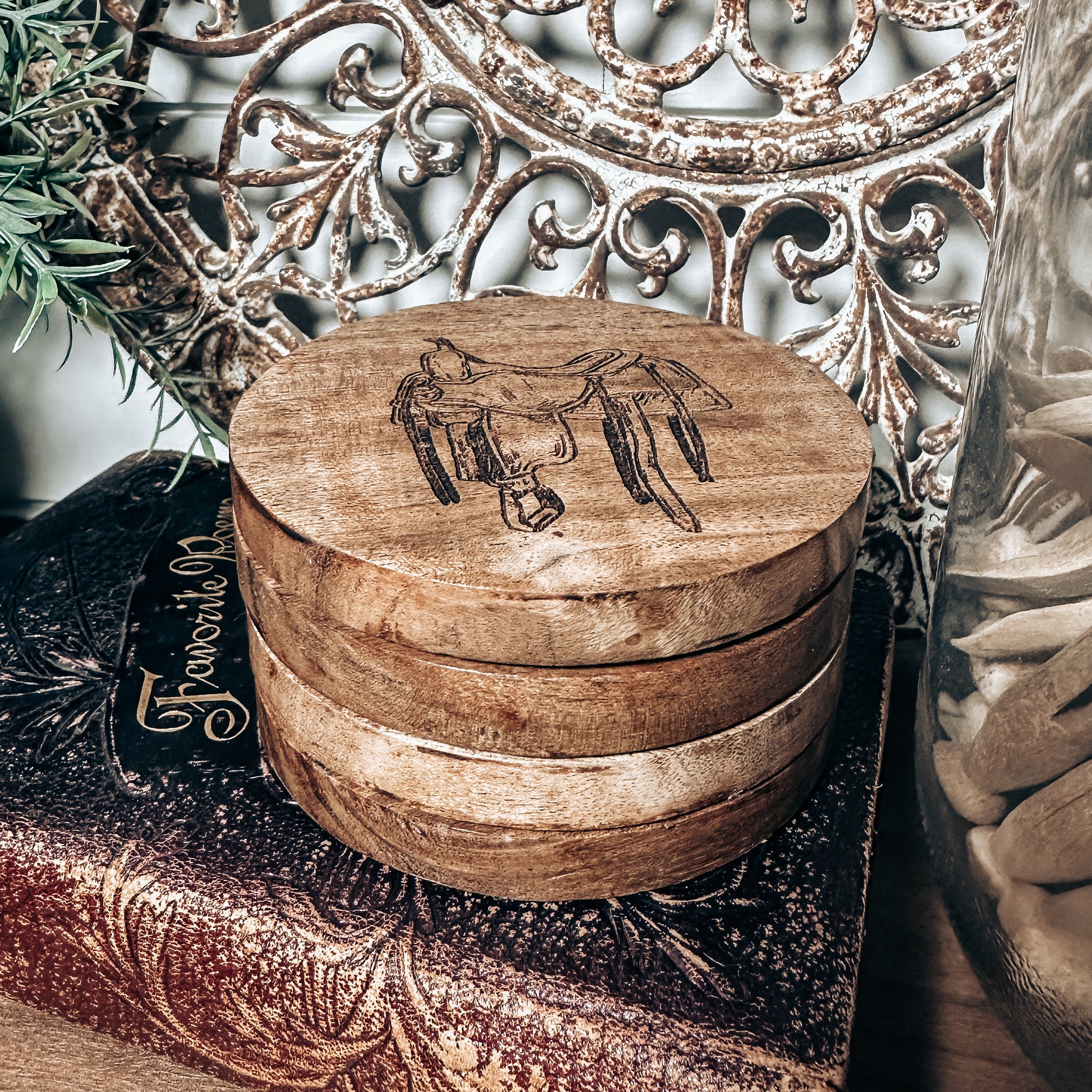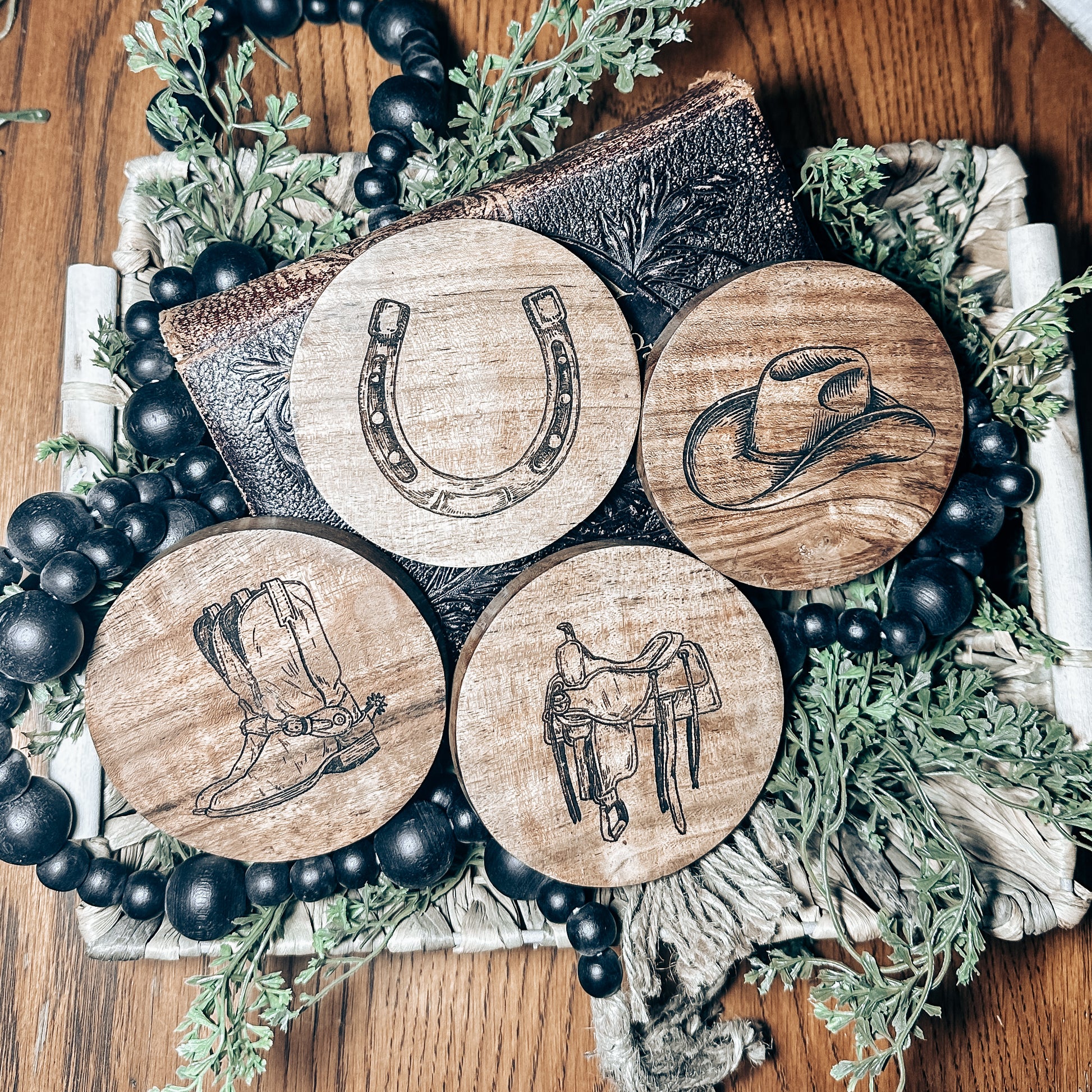 Elevate your next gathering with our personalized acacia wood coasters! Engrave them with your family cattle brand or names for a unique touch. These limited edition coasters are perfect for weddings and make thoughtful gifts. Don't miss out, get yours while supplies last!