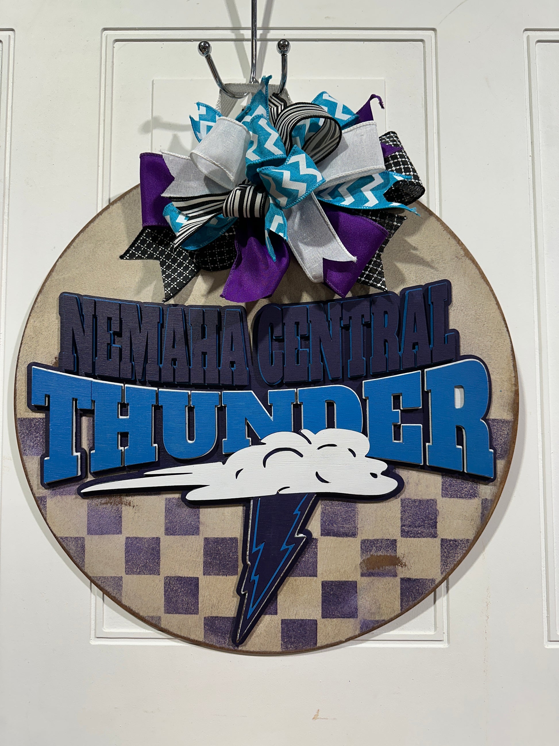 Show your school spirit with this custom door hanger, handcrafted right here in Kansas. Perfect for game days, classrooms, it celebrates your team's mascot and pride. Whether you're a teacher looking for classroom décor, a booster club member seeking fundraiser items, or a student wanting to display local school loyalty, this personalized door hanger brings spirit to any space. Make it uniquely yours with custom details that reflect your school's colors and character. An ideal gift for fans and a standout addition to any game day setup. I am not able to do any college or licensed mascot.